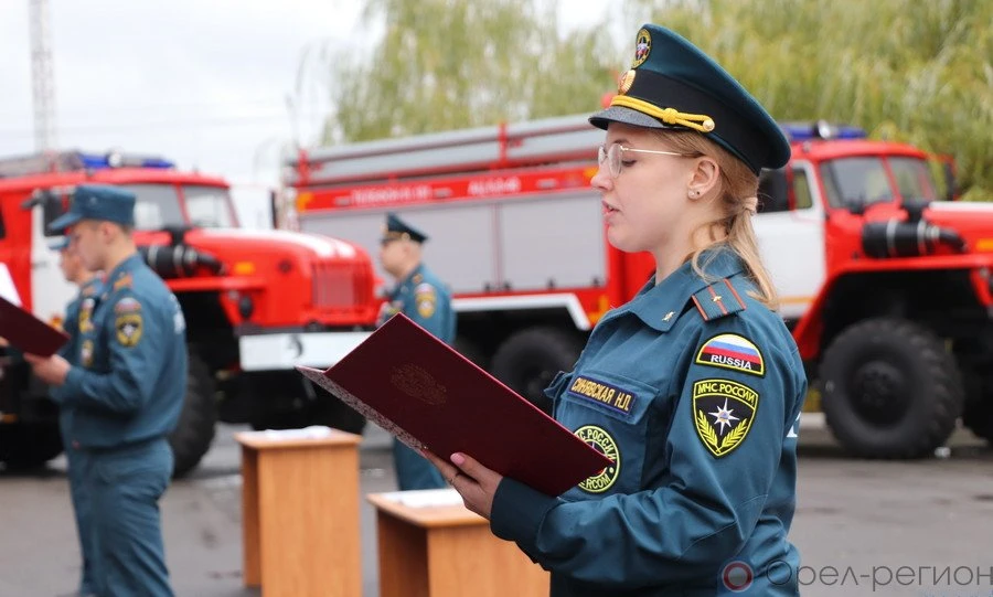Здесь собрались руководство и личный состав ГУ МЧС России по Орловской области. А началась она с выноса знамени ведомства.