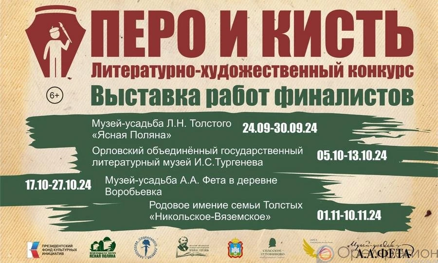 Напомним, что литературно-художественный конкурс «Перо и Кисть» направлен на популяризацию литературного наследия И. С. Тургенева, А. А. Фета и Л. Н. Толстого. Организатором конкурса выступает АНО ПСП «Лаборатория социального развития» при поддержке музея-усадьбы Л. Н. Толстого «Ясная Поляна» и Президентского фонда культурных инициатив. (6+)