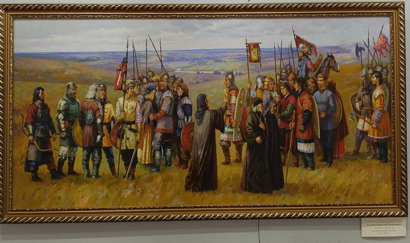 Полотна, посвящённые великим событиям, той же Судбищенской битве; картины, запечатлевшие уютные дворики старых улиц; пейзажи, отражающие красоту и богатство разных уголков России, — всё это о любви к Родине, о гражданской позиции и о поэзии бытия. Всё это воспринимается как образ вечной Родины.