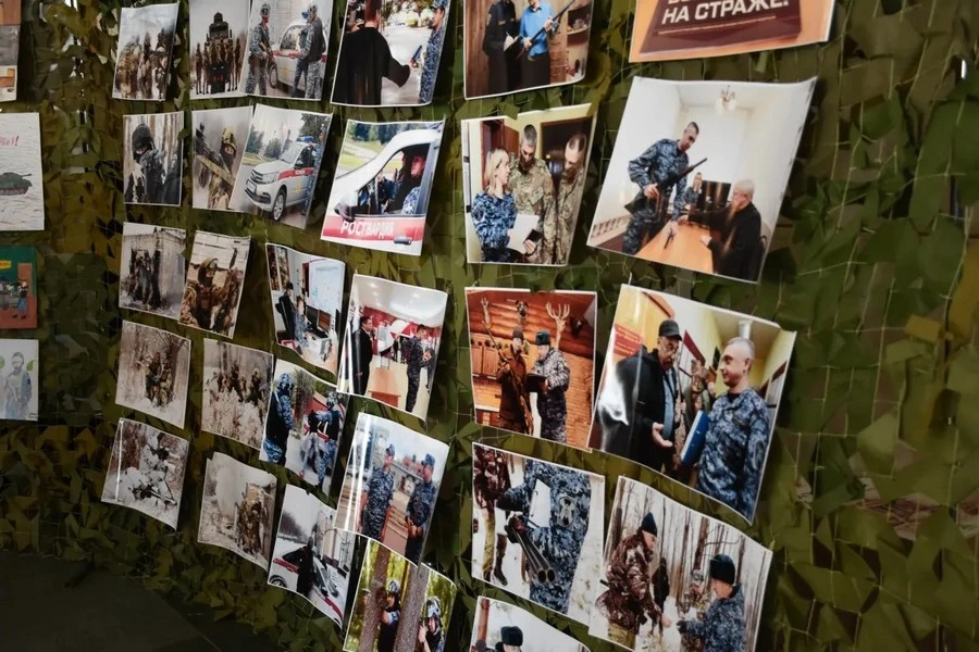 В фойе концертного зала для гостей и виновников торжества были организованы несколько экспозиций: фотовыставка «Всегда на страже!», выставка детских рисунков «Мой папа росгвардеец!», а также выставка специальных средств и обмундирования подразделений Росгвардии.