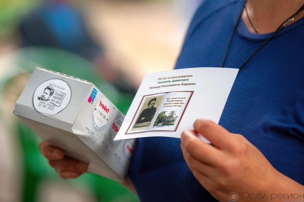 Художественный штемпель спецгашения представили на «Андреевском литературном вернисаже», который состоялся 19 августа в областной библиотеке им. И. А. Бунина. Гости не только поближе познакомились с творчеством Леонида Андреева, но и получили в подарок почтовые карточки с изображением писателя и его Дома-музея. На них желающие смогут сделать спецгашение уже в эту субботу.