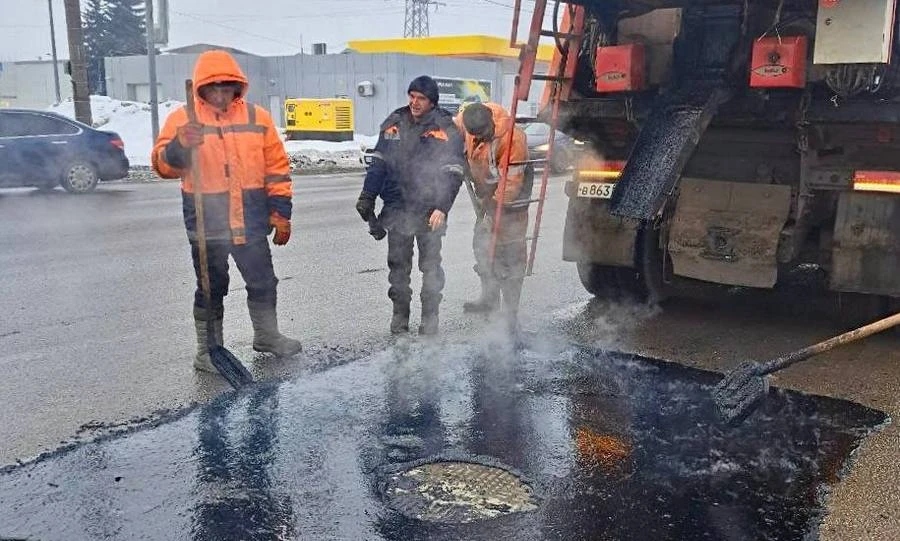 Специалисты «Спецавтобазы» поделились, что для ремонта в зимний период используется специальная техника — термос-бункер «Вулкан», который может выполнять работы при температуре до —10 °C. Ремонт литым асфальтом позволяет сократить затраты до 60% и оперативно устранить повреждения дорожного покрытия.