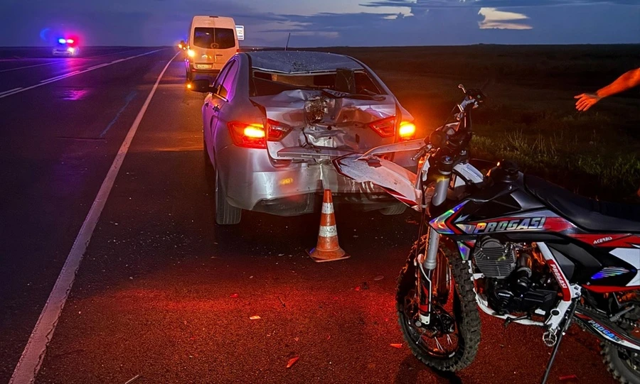 Юноша ехал на мотоцикле без государственного регистрационного знака, не справился с управлением, выехал на обочину и врезался в стоящий автомобиль Lada. В результате ДТП водитель двухколёсного транспорта получил телесные повреждения и был госпитализирован.