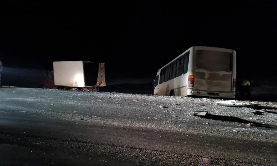 Грузовик ГАЗ стоял на проезжей части, когда в него влетел автобус.