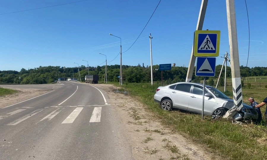 При повороте налево комбинированная дорожная машина создала помеху автомобилю Nissan. Водитель иномарки попыталась избежать столкновения и съехала в кювет, где врезалась в столб. В результате ДТП женщина, управлявшая автомобилем Nissan, получила телесные повреждения.