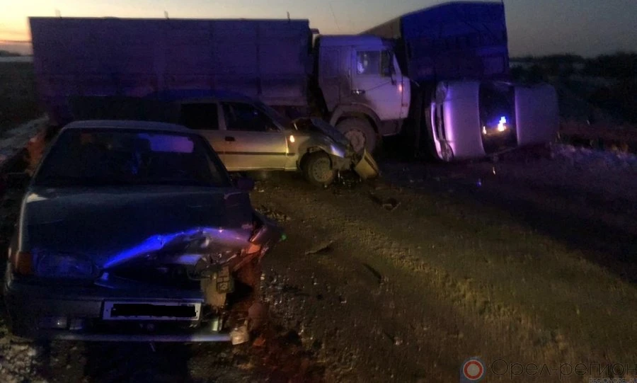 - Водитель КамАЗа допустил наезд на автомобиль Chevrolet Nivа, Daewoo Nexia, ВАЗ-2114 и Мazda 3. В результате ДТП водитель автомобиля Mazda 3 и водитель автомобиля Daewoo Nexia получили телесные повреждения, - рассказали в УГИБДД УМВД России по Орловской области.