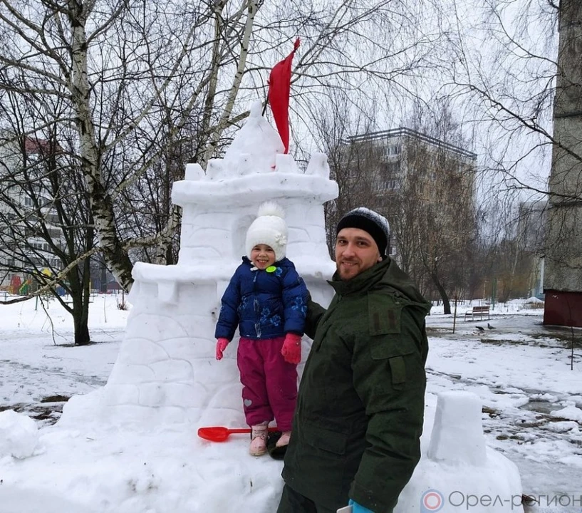 Снежного мастера зовут Андрей Старцев. По образованию он юрист, но сейчас трудится в сфере IT-технологий. Но в душе он, конечно, настоящий художник. Вместе с ним возле башни были его супруга Виктория и маленькая дочка Варя, которой идёт четвёртый год. Через несколько минут уже собралась большая компания из родителей и малышей. Все смотрели на снежную крепость с восхищением и восторгом.