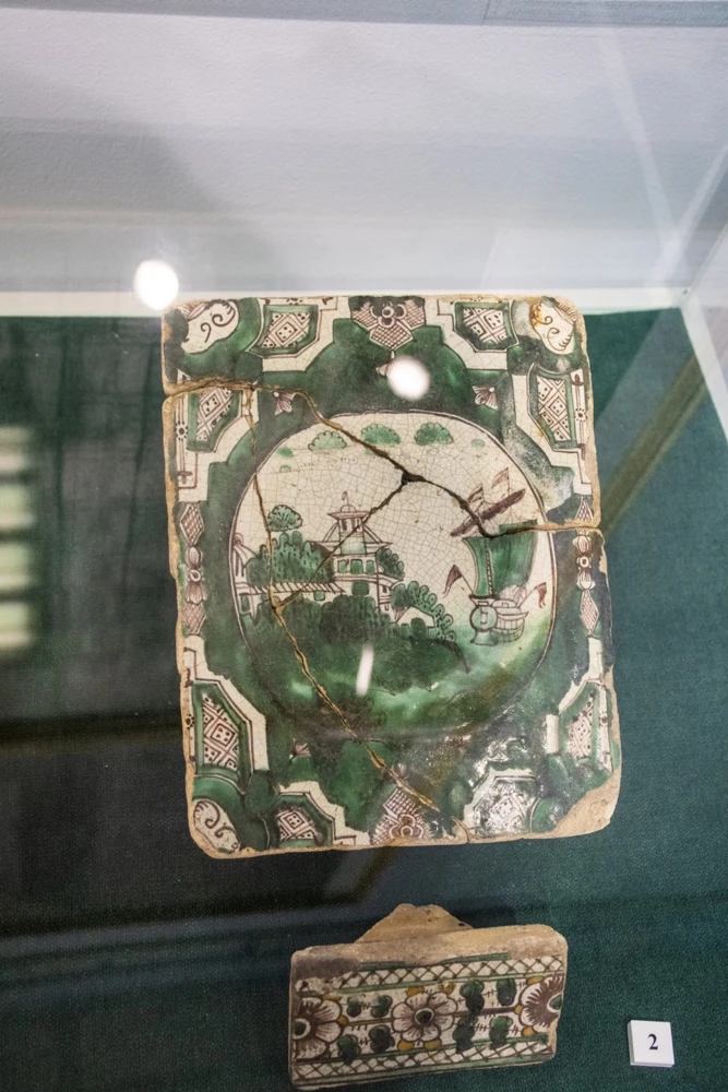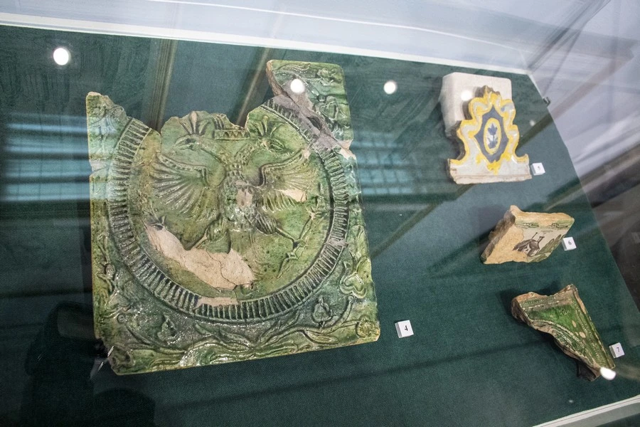 В экспозиции представлена часть коллекции изразцов, всевозможные горшки. Кстати, на плакате у входа в экспозиционный зал можно увидеть, как выглядела и как называлась та или иная посуда. Тут вам ендова, жаровня, рыльник, подойник, корчага, черепушка, горшок полевик и горшок для топления масла. Так что у посетителей выставки есть возможность узнать, чем отличается канопка от кандюшки или кубышка от крынки.