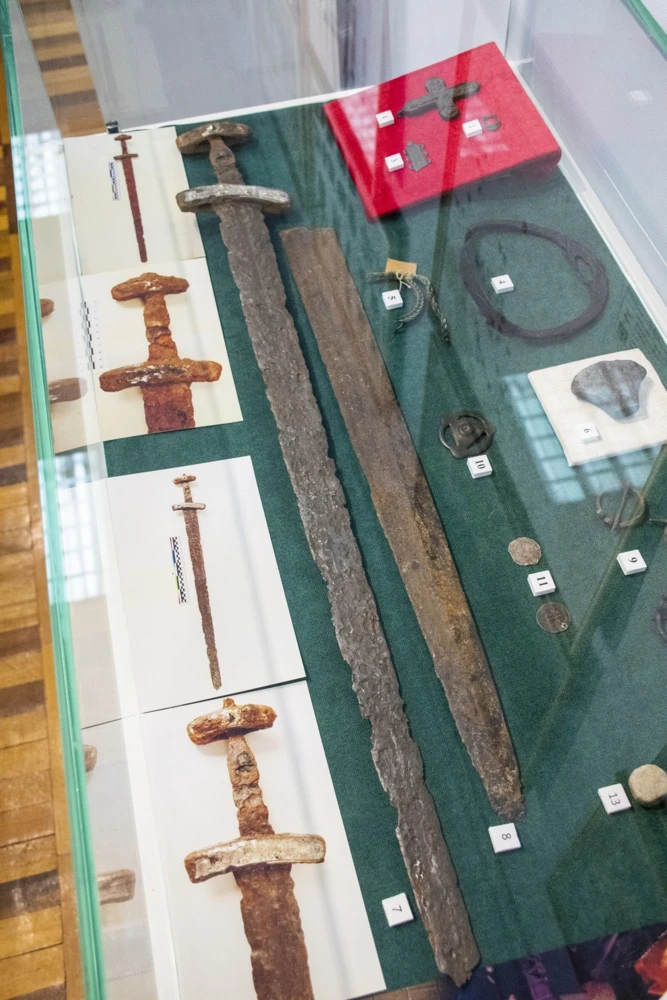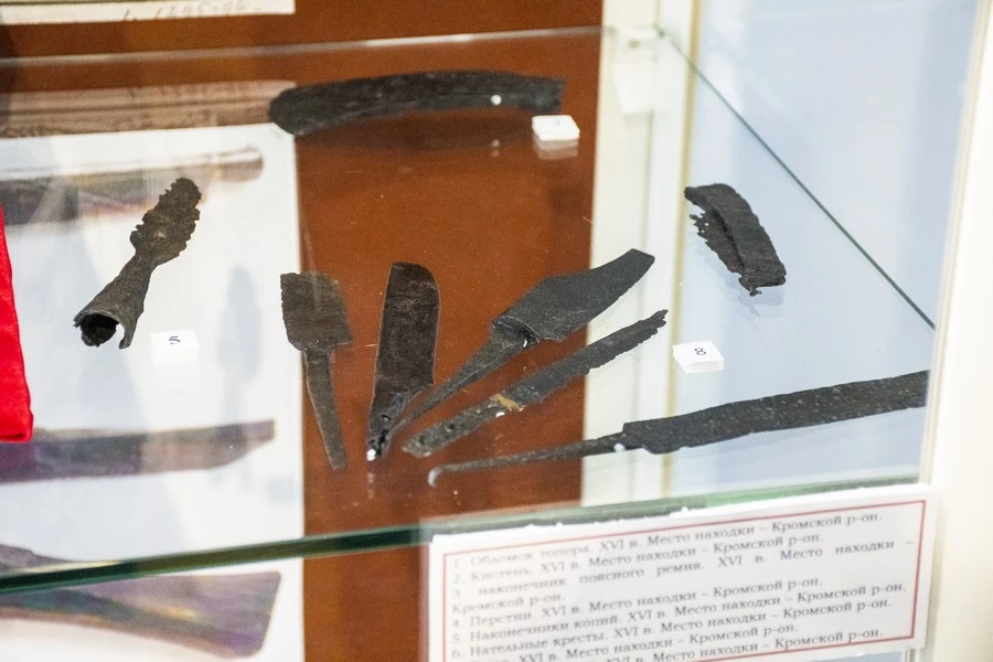 — Представленное на выставке из фондов имеет особую ценность — всё это надо доставать, отряхивать от пыли и показывать, ну и, конечно, представлять новые находки, обнаруженные в прошлом году, — сказал Олег Александрович. — Например, таких уникальных вещей, как найденный во Мценском районе меч, считанные единицы. Подобные находки были в Курской и Московской областях, и всё.