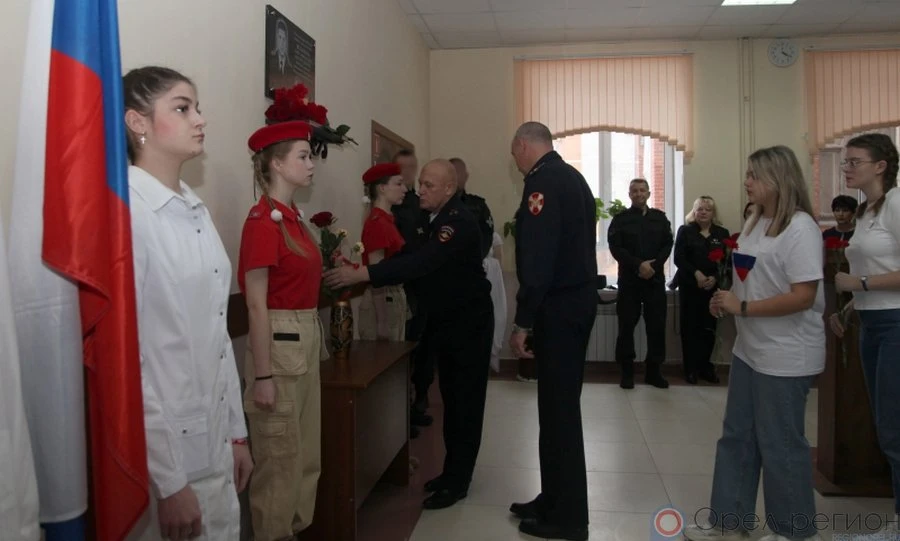 В церемонии открытия мемориальной доски в честь выпускника Орловского медицинского колледжа Дениса Мельникова приняли участие родственники погибшего, сотрудники регионального УМВД, ветераны ведомства, члены общественных организаций, волонтёры, руководство и учащиеся колледжа.