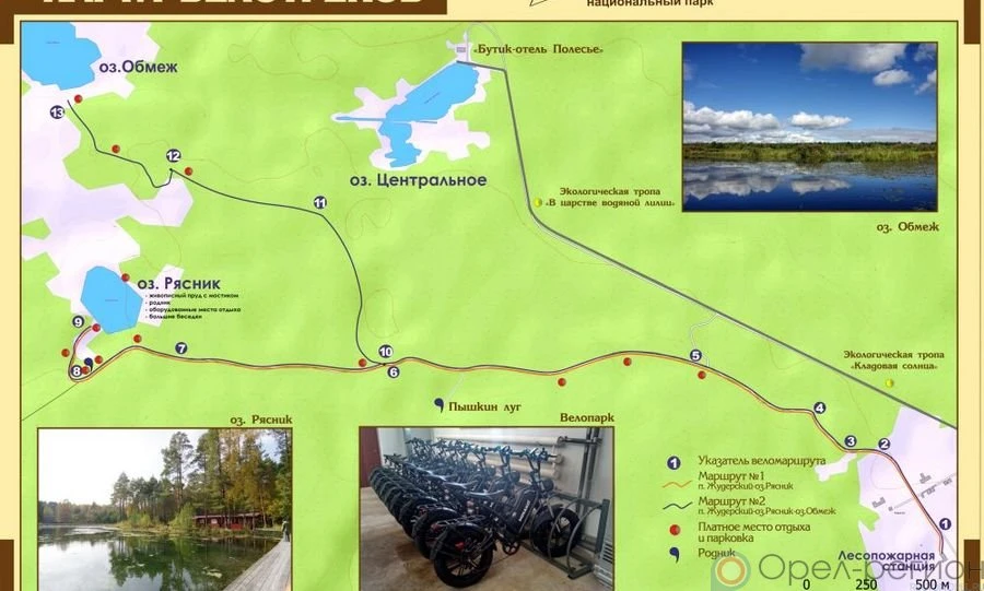 Два направления велотрека заканчиваются красивейшими озёрами - Рясник и Обмеж. По пути встречаются места отдыха, где можно устроить пикник на природе.