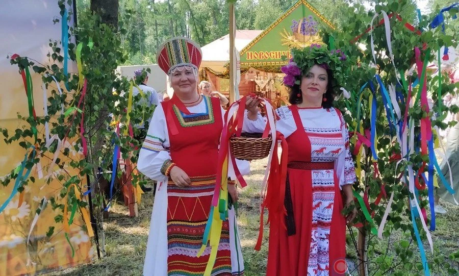 А какая же Троица без песен? Фольклорный ансамбль «Каравай» представил своё выступление «Фольклорная картинка». Свои творческие поздравления подарили зрителям вокальный ансамбль «Соловейко» из Курска, народный вокальный ансамбль «Стожары» из Луганска и заслуженный коллектив Республики Беларусь ансамбль народной музыки и песни «Свiтанок».