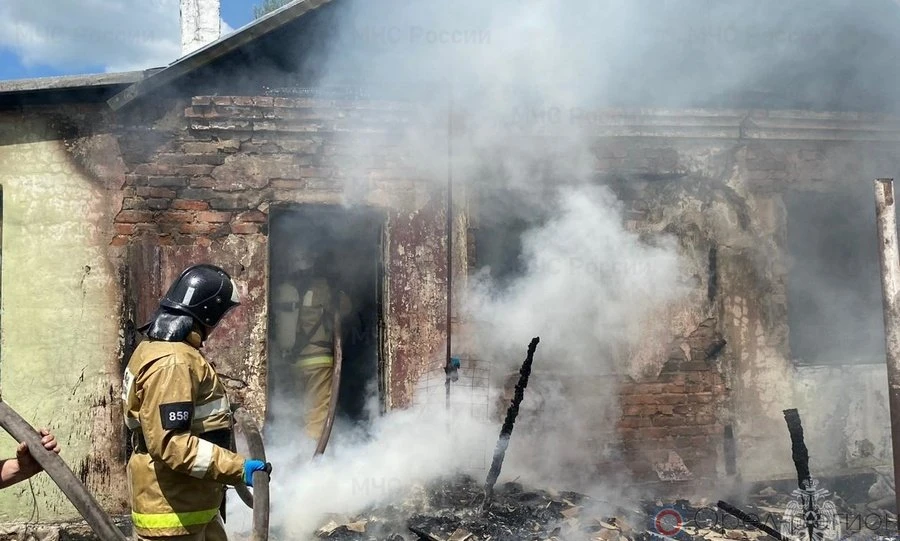 В 11.57 спасателям поступило сообщение о возгорании. На момент прибытия пожарных дом горел открытым пламенем по всей площади.
