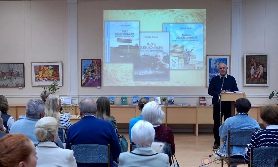 На презентации Александр Полынкин рассказал об истории создания книги, как ниточка за ниточкой разматывался увлекательный клубок историй, личностей, событий и как неожиданно много оказалось этого драгоценного материала на Орловщине.