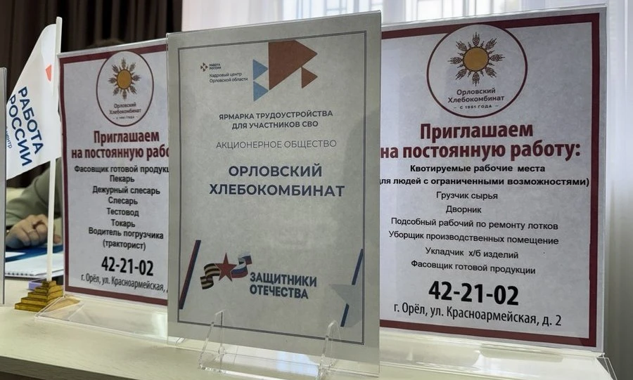 Свои вакансии соискателям с боевым опытом предложили Управление Росгвардии по Орловской области, Орловский кабельный завод, Орловский хлебокомбинат, а также компании «Счётприбор», «Газпром газораспределение Орёл» и «Орёлстроймаш».