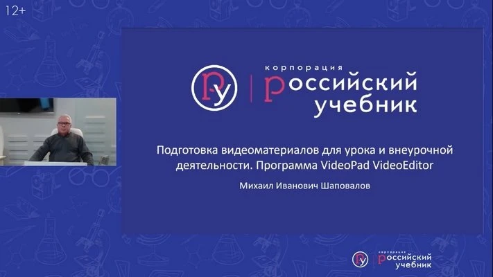 Ведущим мероприятия выступил Шаповалов Михаил Иванович, кандидат технических наук, доцент Московского педагогического государственного университета, автор многочисленных курсов повышения квалификации работников образования. Участникам вебинара была продемонстрирована методика применения видеомонтажа для подготовки видеоматериалов, использующихся в деятельности педагога. Слушатели познакомились с программой VideoPad VideoEditor (программа с открытой лицензией), узнали об основных возможностях видеоредактора, таких как работа с использованием и без использования монтажной линии, озвучивание, добавление титров, сохранение видео в разных форматах.