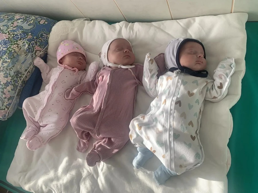 — Врач, внимательно изучая изображение на экране, сказала мне: «А у вас не двойня, а тройня», — вспоминает Валентина. — Признаюсь, я не сразу осознала, что происходит. Ещё к новости о двойне не привыкла, а тут трое. И шок, и страх, и ответственность какая...