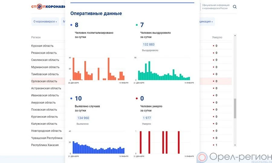 В России за сутки увеличилось число подтверждённых новых случаев заболевания COVID-19. Так, 18 января было 5478 человек, 19 января зарегистрировано 5914 (+436 за сутки).