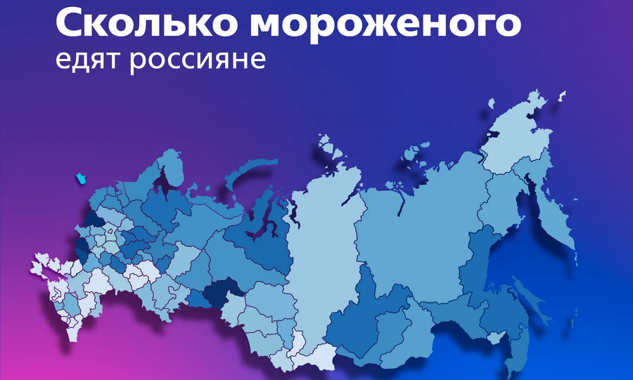 Аналитики банка проанализировали продажи мороженого в различных регионах страны в течение 2024 года и предыдущих лет. Выяснилось, что в Курской, Смоленской, Белгородской, Тюменской и Нижегородской областях средняя цена на мороженое составляет около 60–70 рублей, и на каждого жителя этих регионов приходится по 6,5–7 пачек мороженого в год, тогда как в среднем по стране при стоимости мороженого в 90 рублей на жителей приходится по 4,5–5 пачек мороженого.